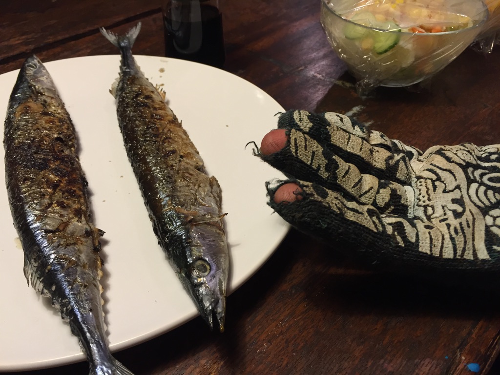 とゆーことで、この日は秋刀魚と一緒に左手の中指を焼いたのでした。