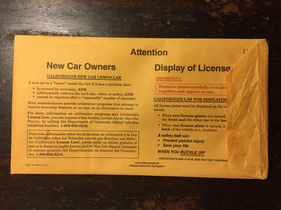New Car Ownersって書いてあって、ちゃんと読んでないけど車の新しいナンバープレートをもらったときに入ってる袋とかだと思います。