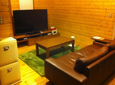 で、こんな感じに置いたのですが、ソファーに座った状態でテーブルに足が乗っけられようになったので、なんだか快適になりました☆