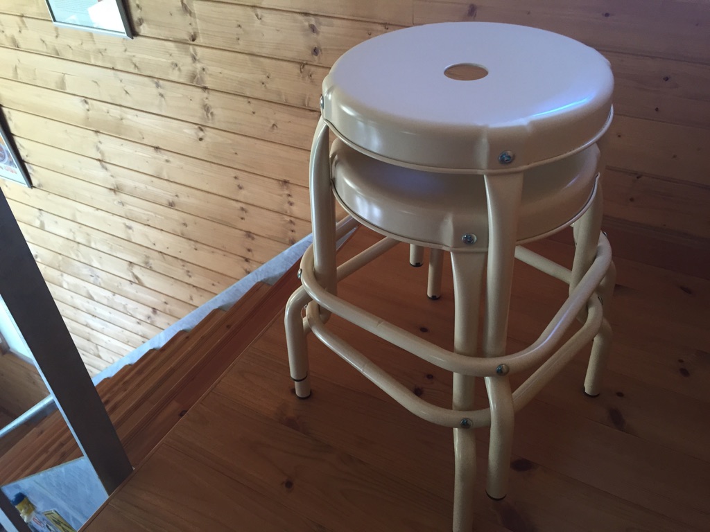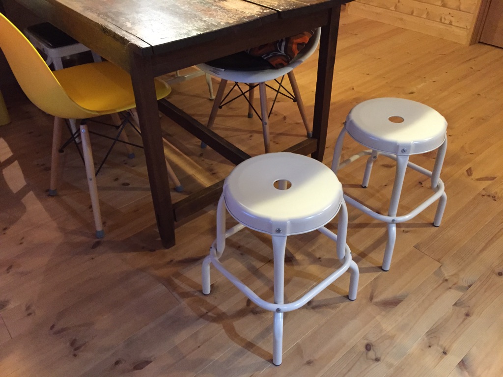 でもって、その度に椅子が足らなくなって、無印のふわふわのビーズクッションを2階から下ろして使ったりするのですが、あれだとテーブルに対して高さがないので、やはり追加で椅子が欲しいな~って思ってました。