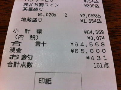 合計点数(ドリンクと料理の合計数)が151点でしたwww