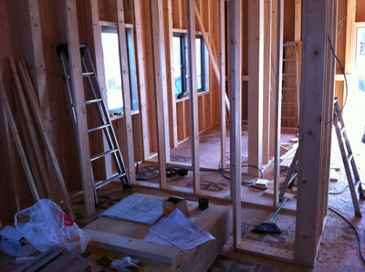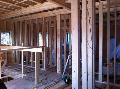そんなこんなで、中を見ようと思って、先日ついたばっかりの玄関ドアを開けて入ると、1階は前回とそれほど変化がなかったのですが、2階がかなり変わっていました。