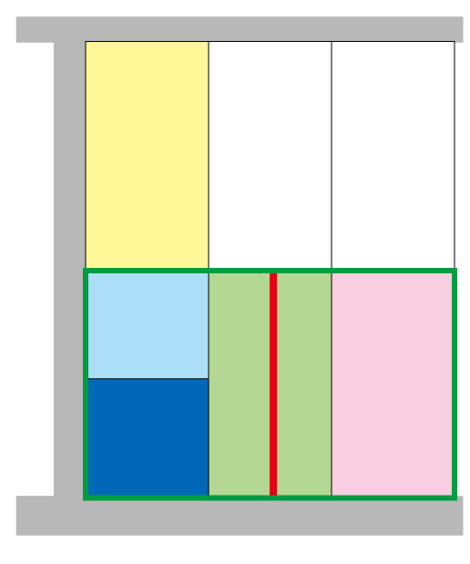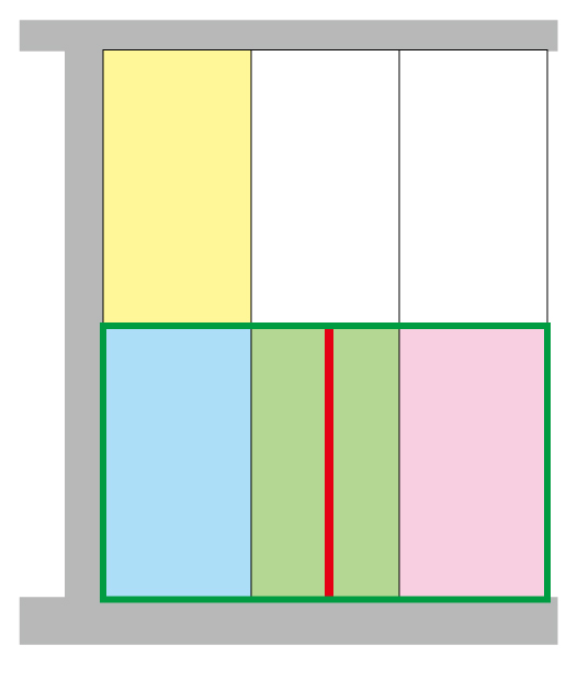 その際に真ん中を区切ったのが赤いラインで、これが僕の家の写真のバックに写りこんでいる銀色のスチールの壁です。