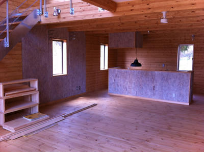 でもって、床もきれいに掃除されてて、こないだまでは靴で上がってたのですが、ついに靴下であがれるようになりました♪