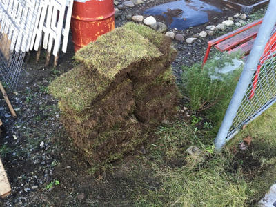 物置の基礎が完成したら、その周りの削り過ぎた部分をぐるりと囲むためにとっておいてあるそうです。