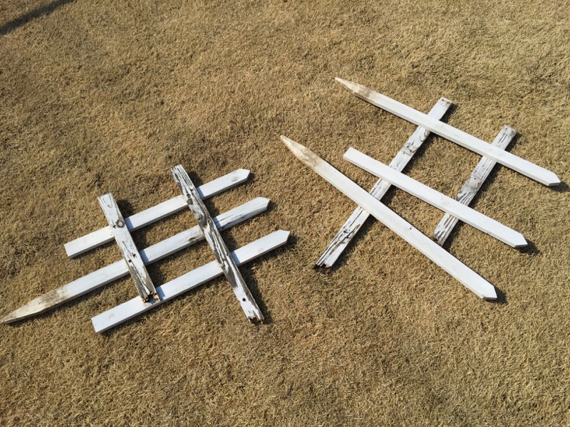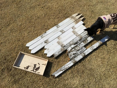 えっと、我が家の庭の南側を金網にフェンスに変えた際に、それまで使っていた白い木の柵が余ってしまいました。