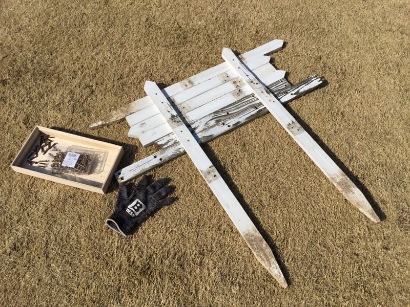 あ。ちなみに、すでに板を2本ぐらい外して、畑用のフェンスの加工に使ってます。