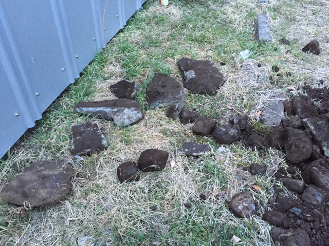 途中、うちの親父が来たので、なんでこんなコンクリの塊みたいのが埋まってるのか聞いたら、なんでも昔ここには豚小屋があって、それの基礎をそのまま埋めちゃってあるんじゃないかとのことでした。