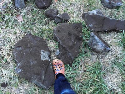 ちなみに、石のサイズが解るように僕の足と比べたら…