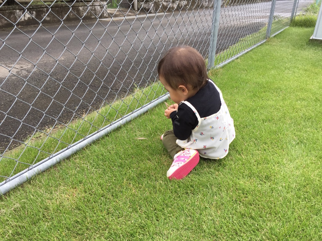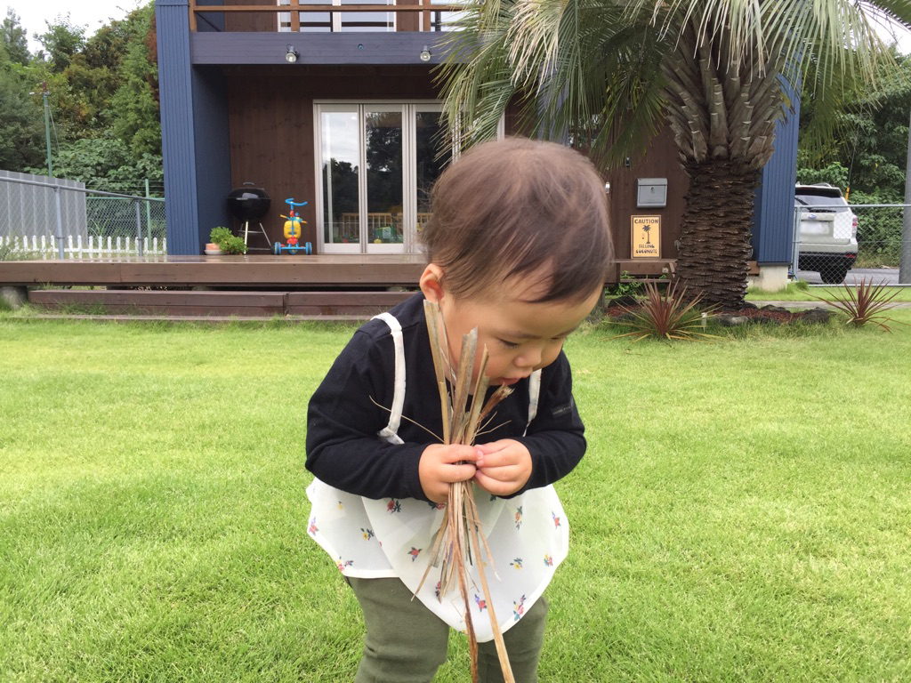 ちなみに、この数分前にママが一人でコンビニに行ってしまい、号泣していたのですが、拾い始めたら一気に機嫌が直って、そのあとは夢中で細かい葉っぱなんかを拾い集めていました。